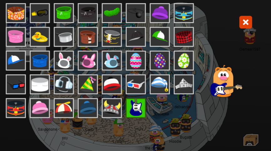 "GENTE! Rocketsnail (criador do Club Penguin) deu-me um item especial no seu novo mundo virtual, Box Critters. É uma guitarra azul especial, que é uma reminiscência do design do meu pinguim Oscar One. Se quer este novo item, entre em Box Critters e digite /oscarproductions no chat! É realmente incrível ver isto. JOGUE AQUI: https://boxcritters.com/